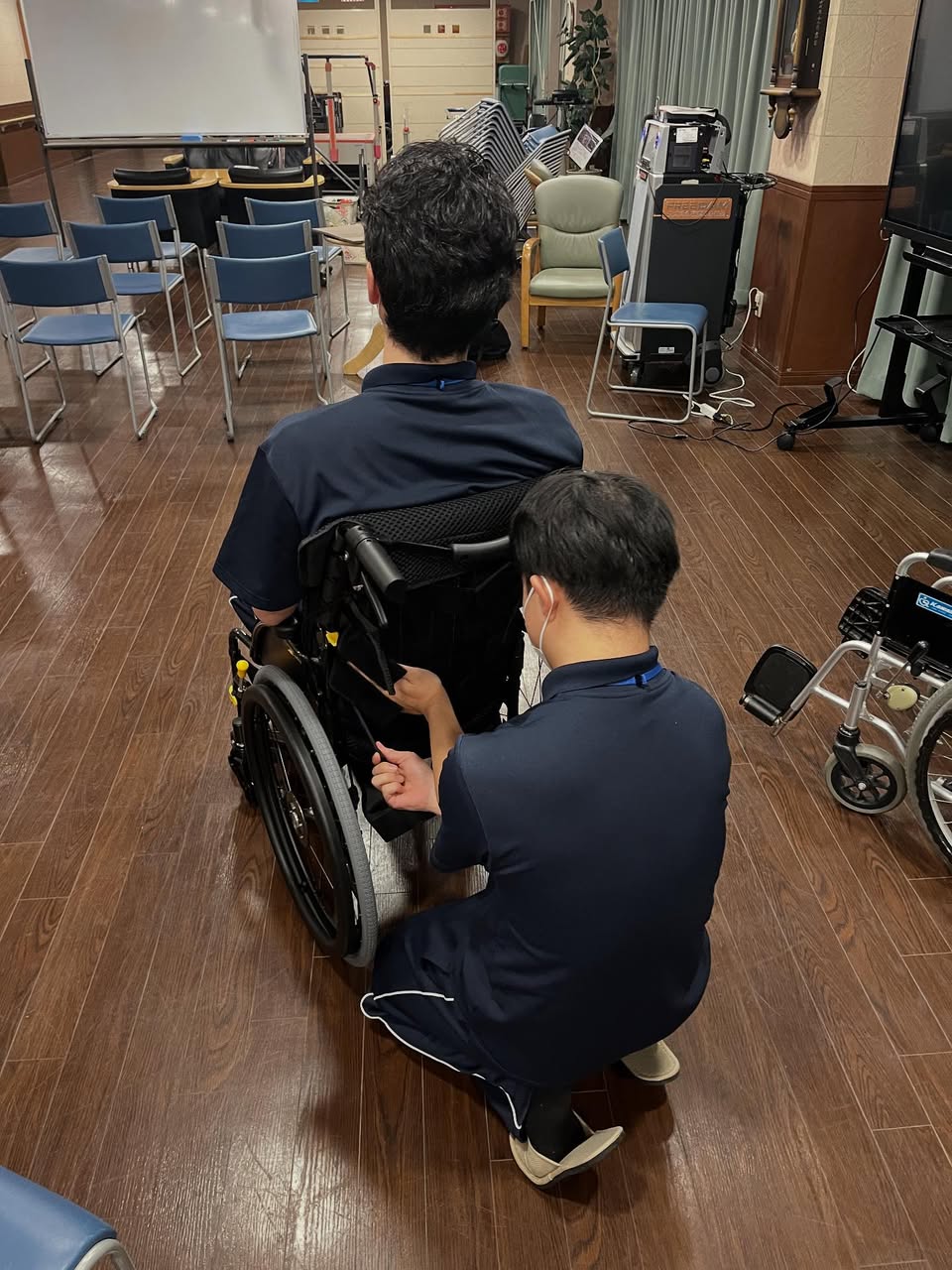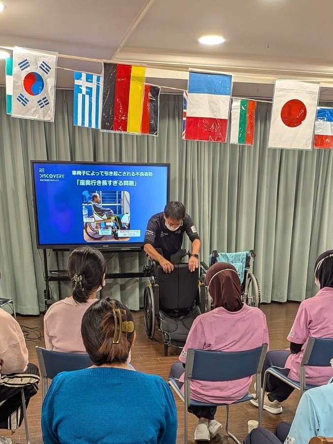 こちらの施設では、すでに背張り調整付きの車椅子を導入されている状況ではありましたが、やはり講演中にお見せする車椅子ご利用者の写真と同じように、座る姿勢で困っている人がたくさんいらっしゃるとのこと。