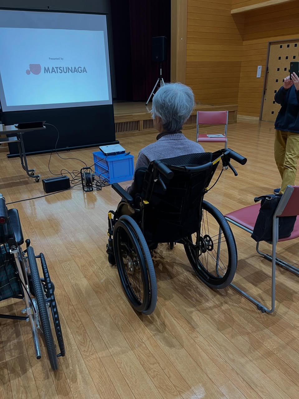 今回は特に「背張り調整機能」が好評で、参加されていた85歳の少し円背がある女性の方からは、
