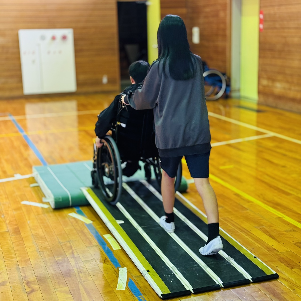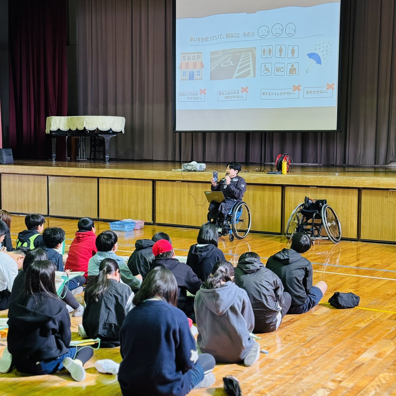 美濃市立中有知小学校で車椅子体験会を実施 2025.11.18 美濃市立中有知小学校 美濃市立中有知小学校の6年生を対象に、車椅子体験会を実施しました。 2023年に最初のご依頼をいただき、毎年恒例の体験会です。今回は車椅子バスケットボールチーム岐阜SHINEの深見選手による共生をテーマにした講話とバスケット体験を中心に、ボッチャや車椅子の介助体験を盛り込みました。 「障がいは不幸ではなく不便という言葉が印象に残りました」「介助される側の不安が体験でき、相手の気持ちを考えた行動をしていきたいと思いました」など、とても素敵な感想をいただきました。