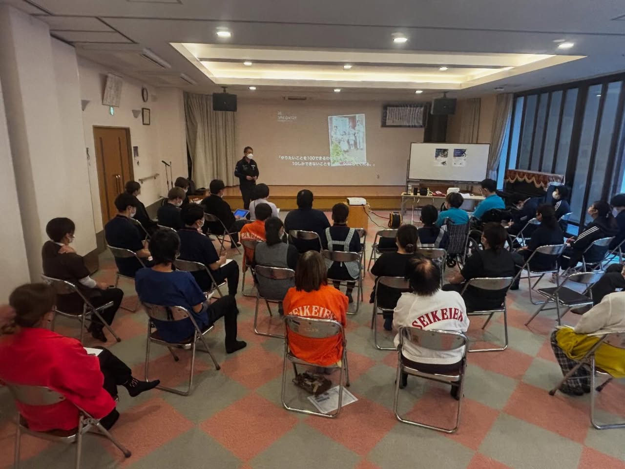 日中の開催にも関わらず、施設長や理事長はじめ、大変多くの職員の皆様がご参加くださいました。皆様の真剣な表情も、とても印象的でした。