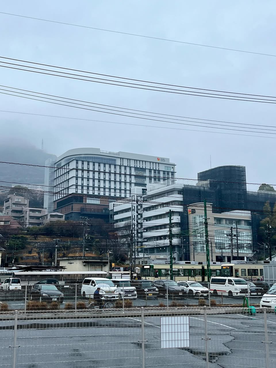こちらは広島市の西部、精神科の急性期、認知症治療などの病棟があり、建物は高台の下から上にまである、たいへん大きな病院。