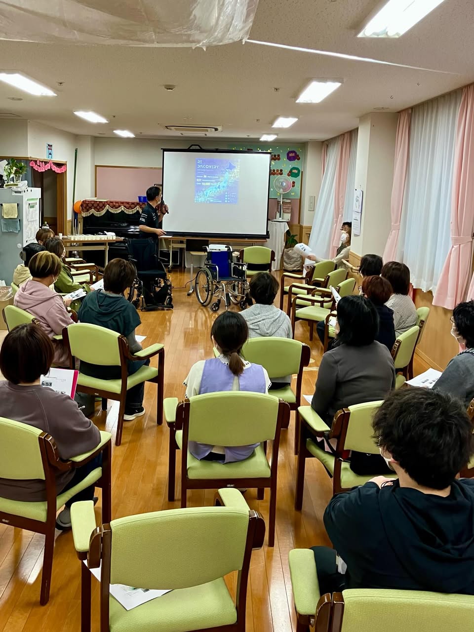 こちらは同じ建物にデイサービス、ショートステイ、訪問介護、居宅介護支援支援などが入った施設で、介護スタッフさん中心にたくさんの方がご参加くださいました。